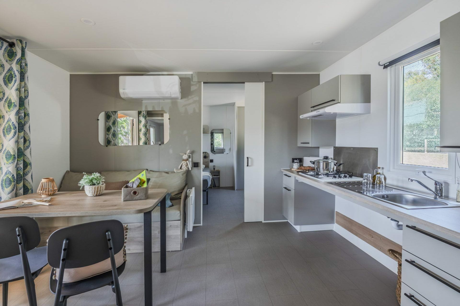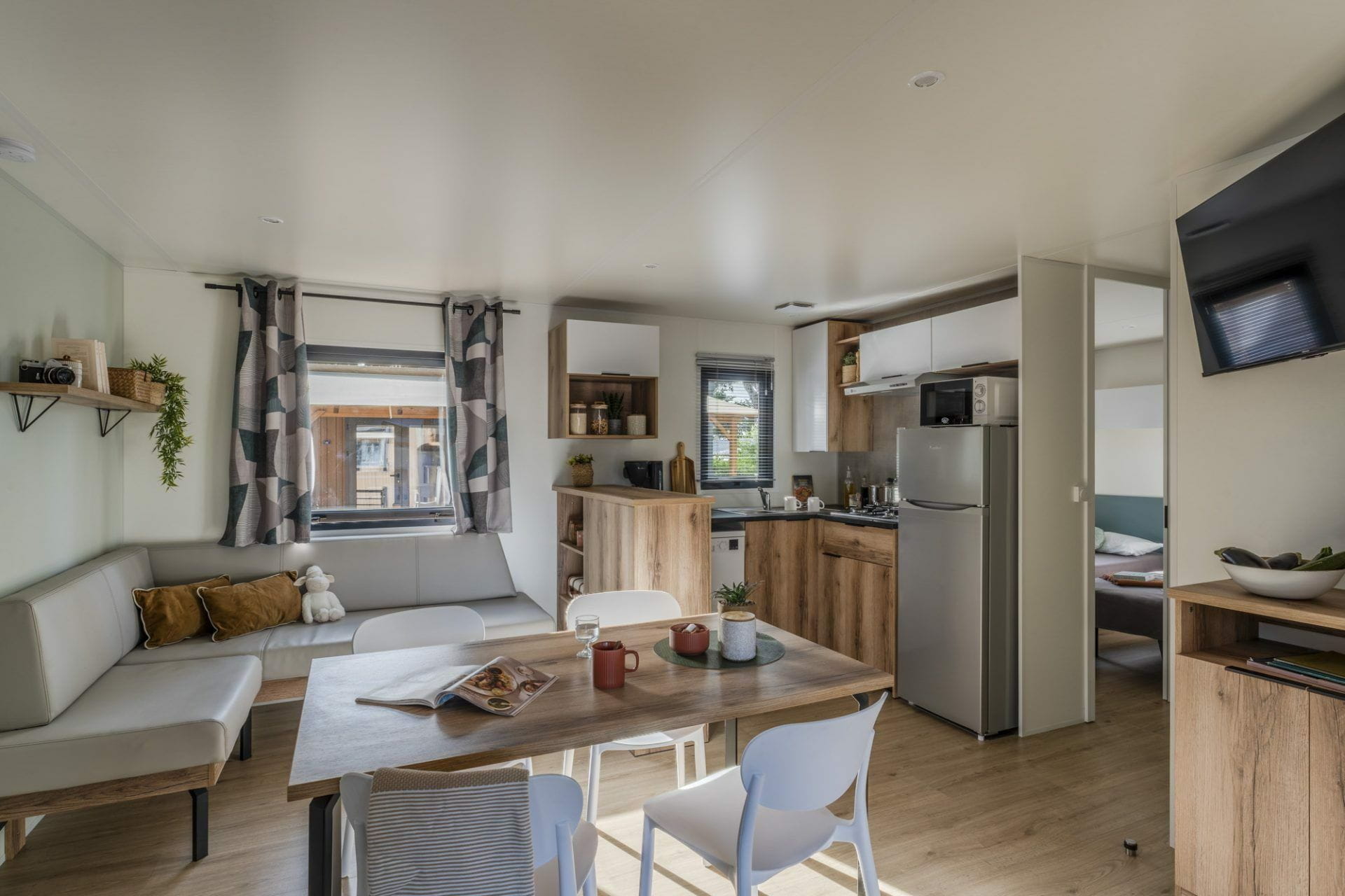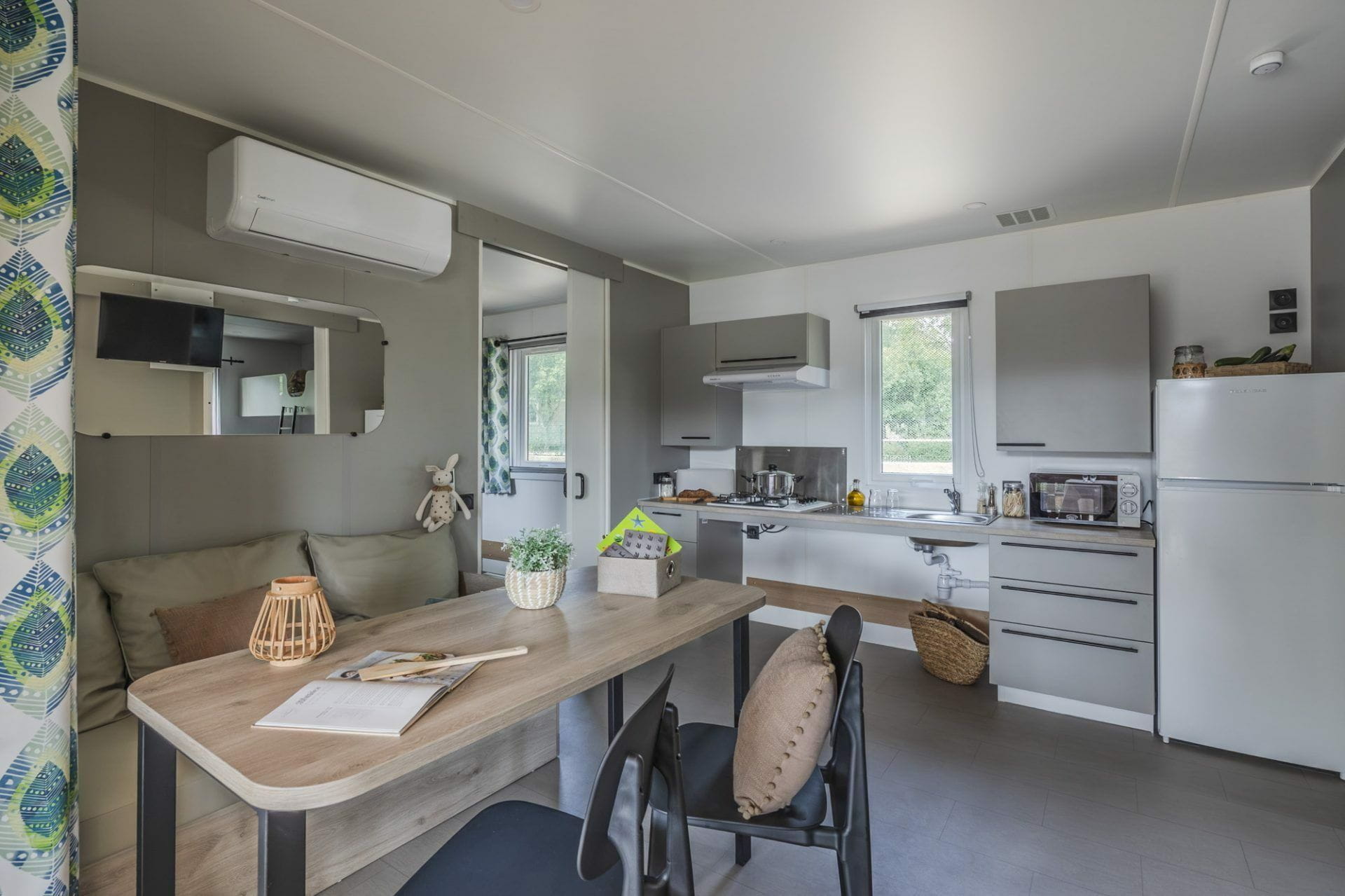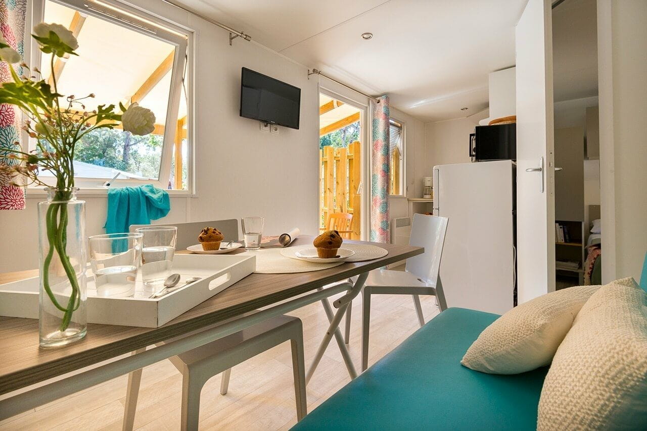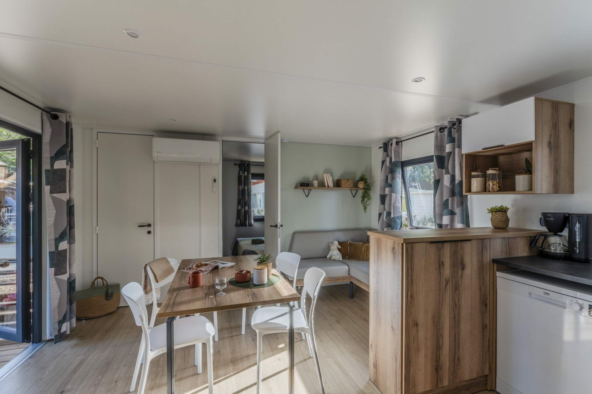 Selon les modèles, vous pourrez bénéficier d’équipements supplémentaires comme un lave-vaisselle, plusieurs chambres séparées, de nombreux rangements ou des aménagements adaptés aux personnes à mobilité réduite. Chaque logement a été pensé pour vous offrir un espace de vie agréable et convivial, parfait pour se ressourcer après une journée de baignade, d’activités ou de farniente au bord de la piscine.