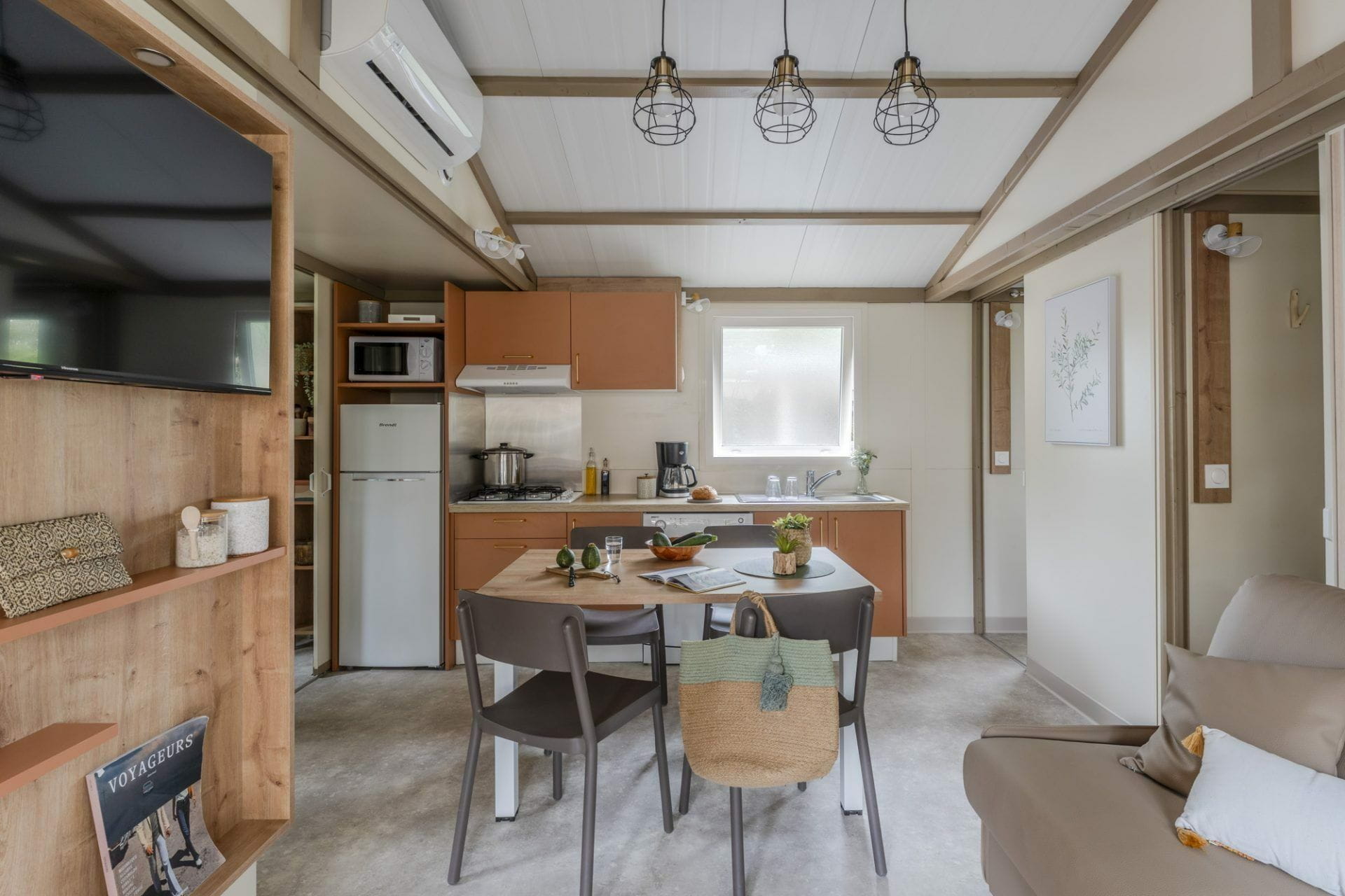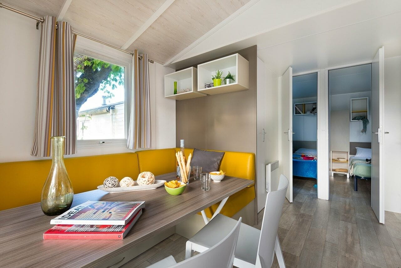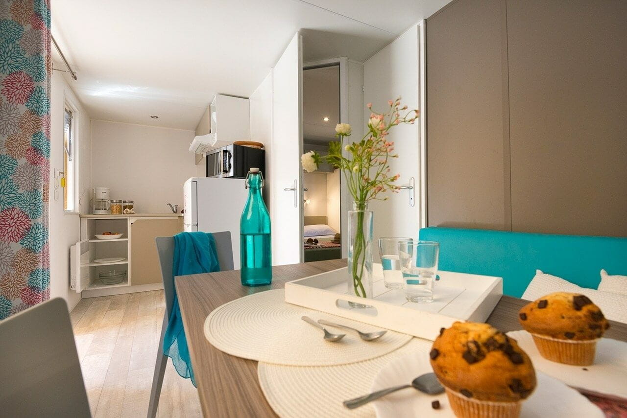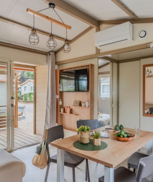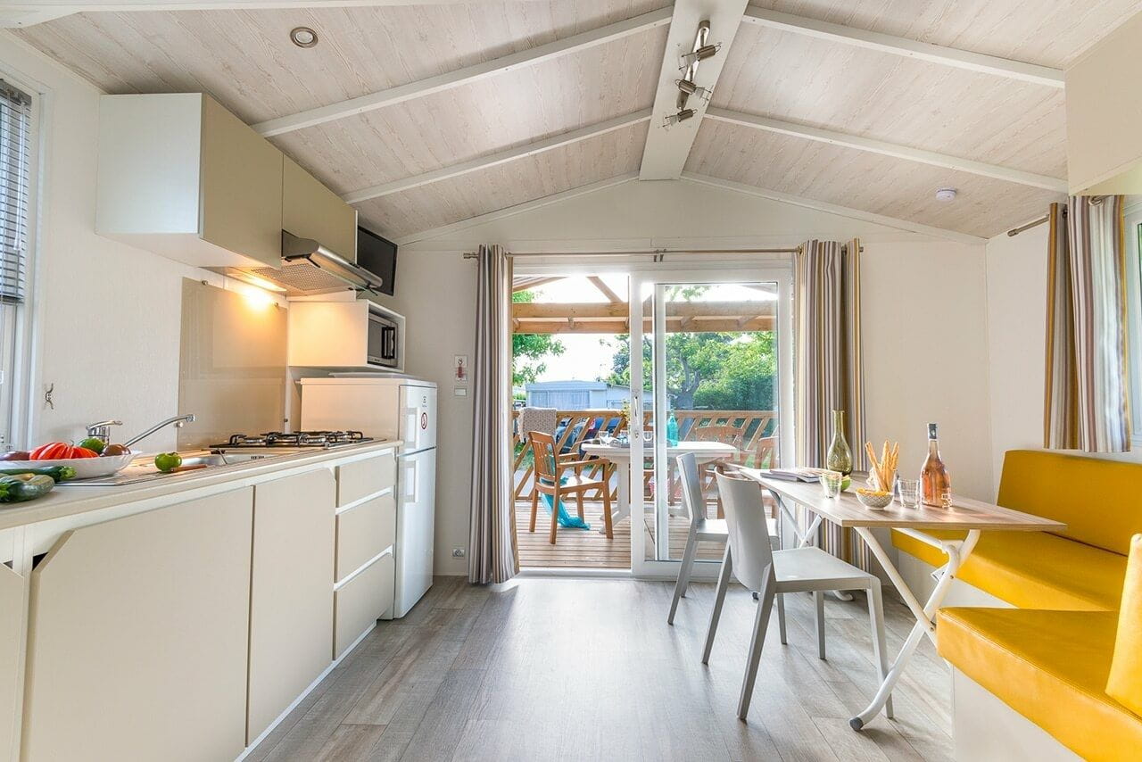 Selon les modèles, vous pourrez bénéficier d’équipements supplémentaires comme un lave-vaisselle, plusieurs chambres séparées, de nombreux rangements ou des aménagements adaptés aux personnes à mobilité réduite. Chaque logement a été pensé pour vous offrir un espace de vie agréable et convivial, parfait pour se ressourcer après une journée de baignade, d’activités ou de farniente au bord de la piscine.