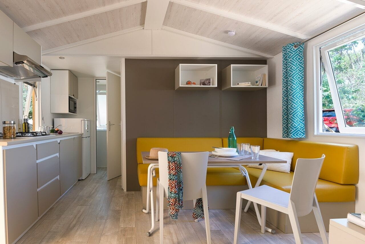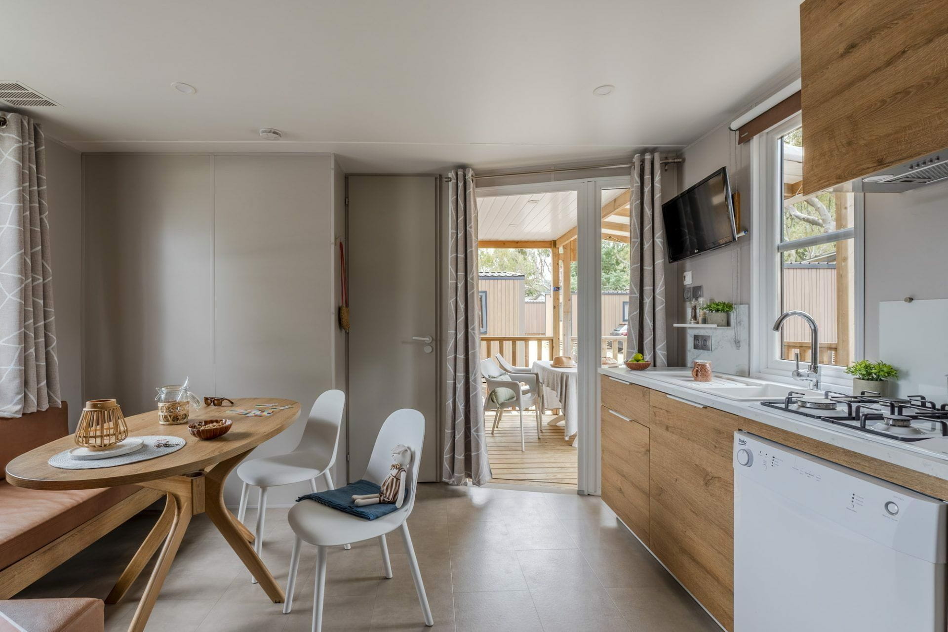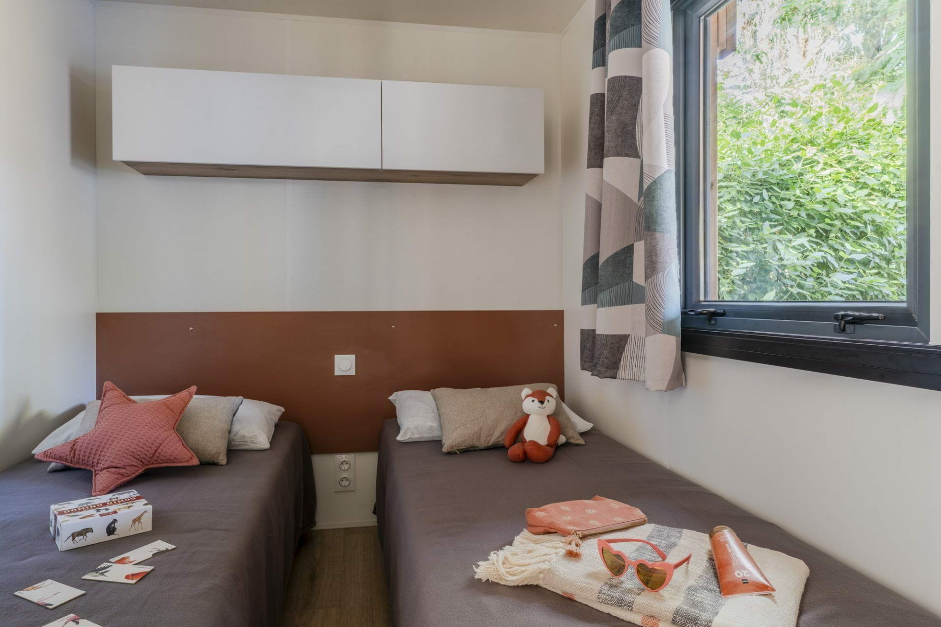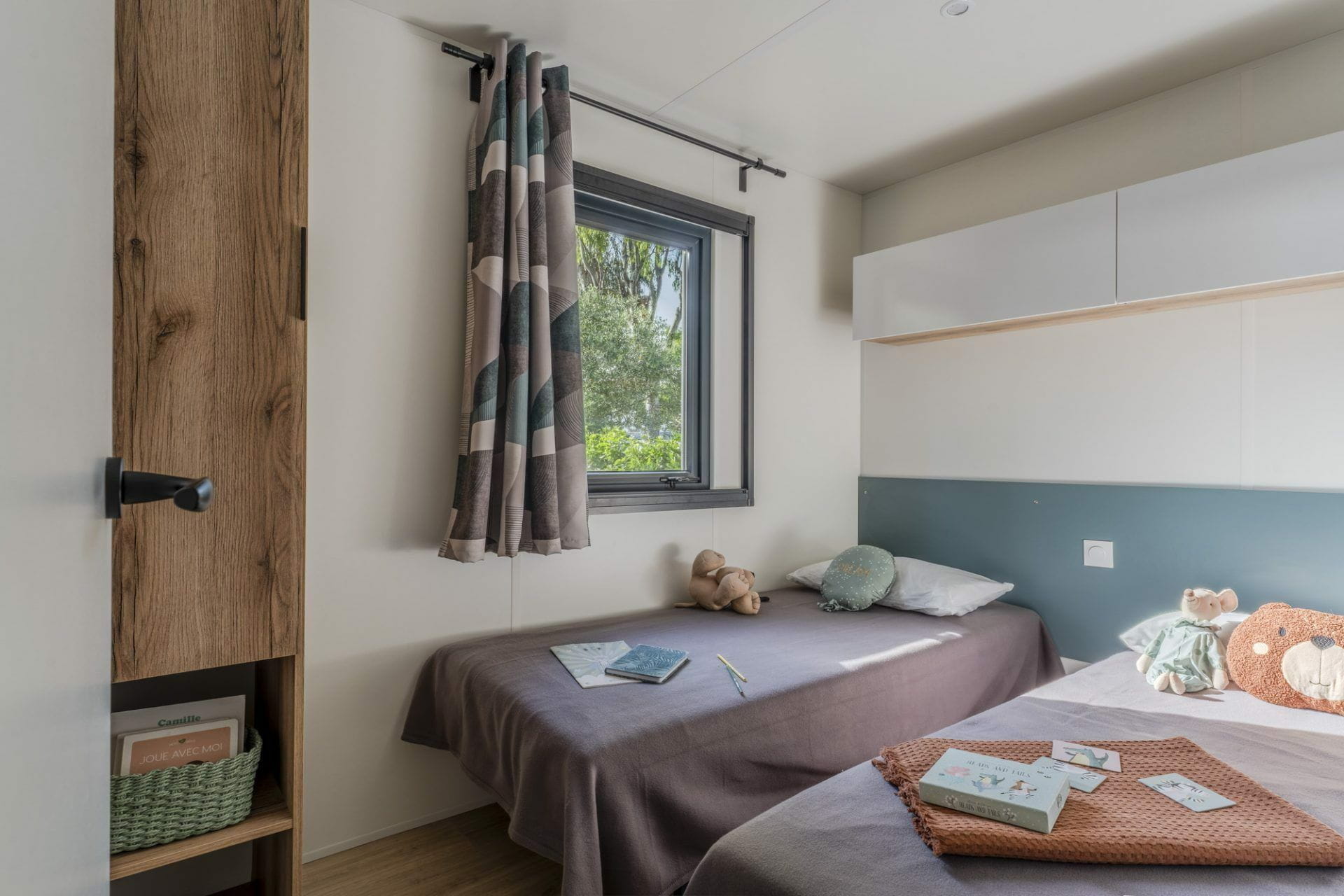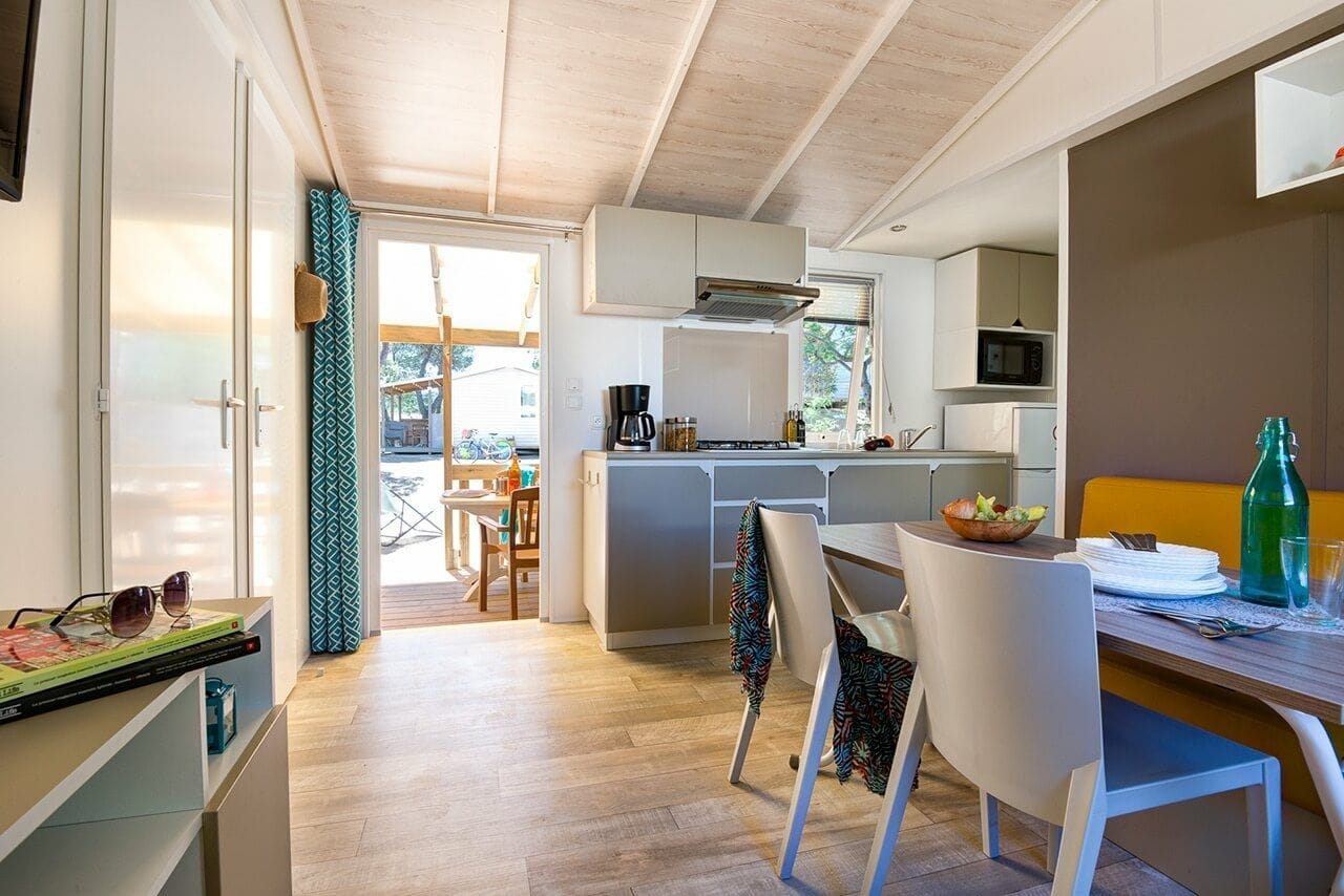 Selon les modèles, vous pourrez bénéficier d’équipements supplémentaires comme un lave-vaisselle, plusieurs chambres séparées, de nombreux rangements ou des aménagements adaptés aux personnes à mobilité réduite. Chaque logement a été pensé pour vous offrir un espace de vie agréable et convivial, parfait pour se ressourcer après une journée de baignade, d’activités ou de farniente au bord de la piscine.