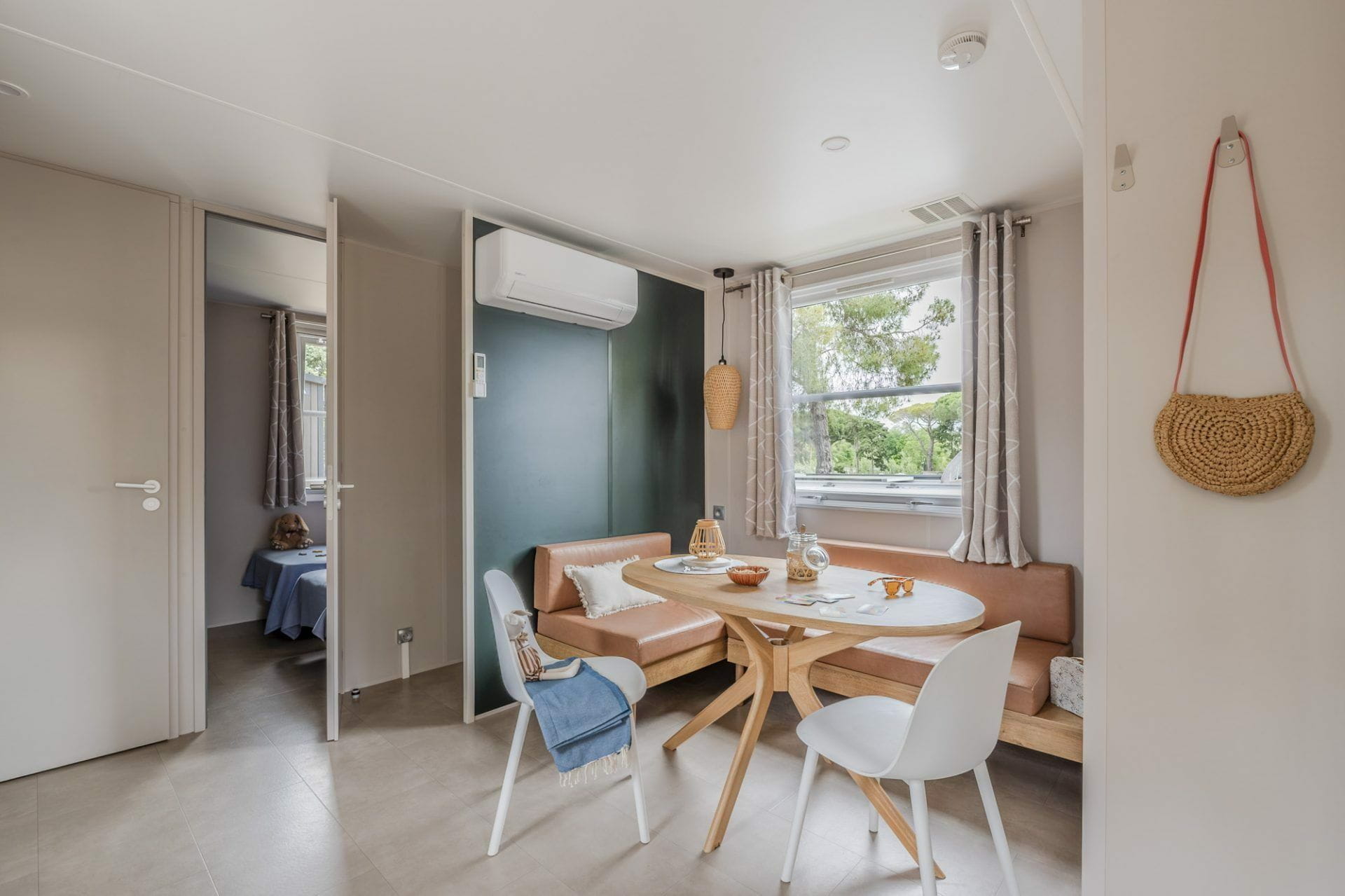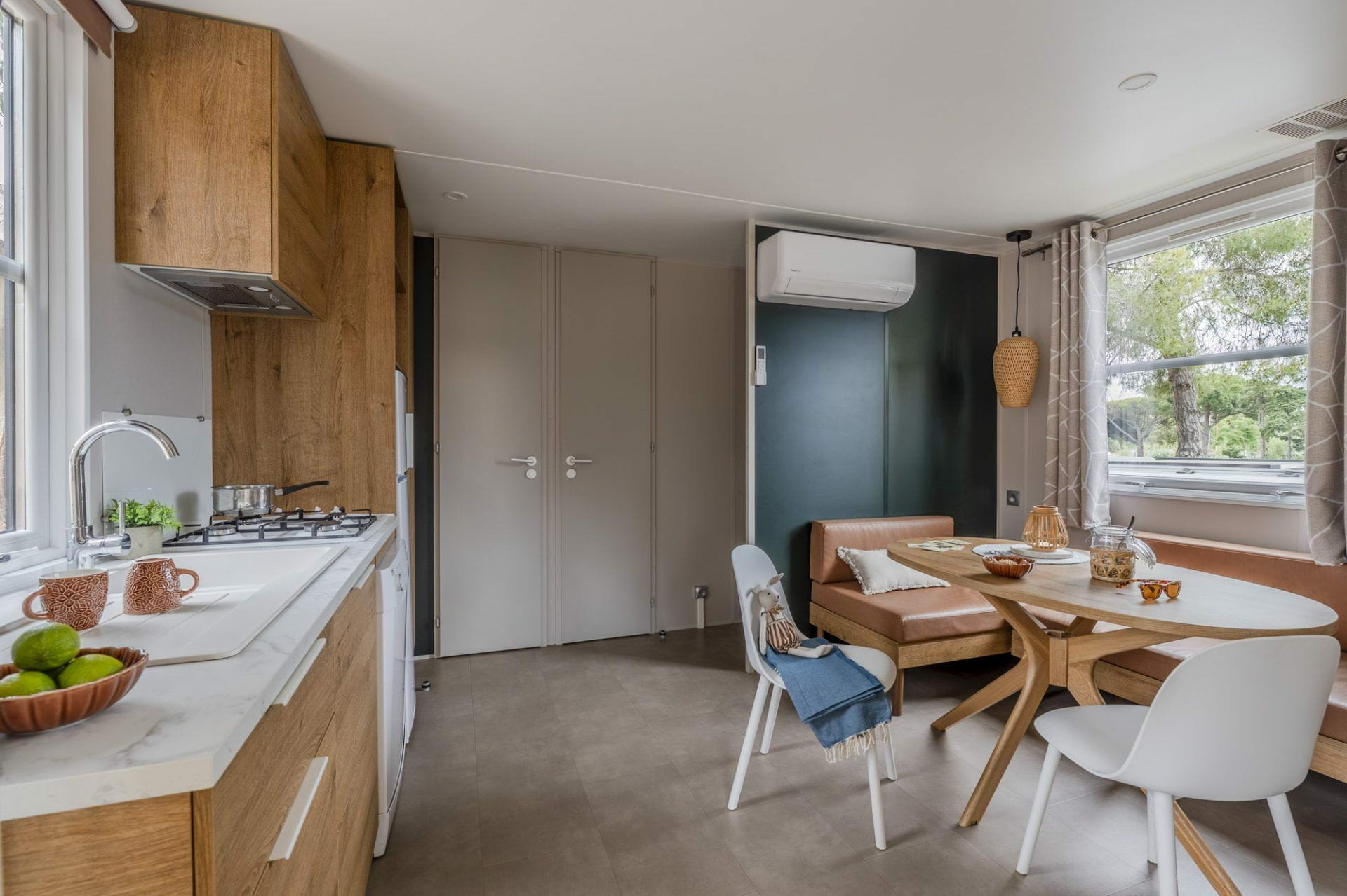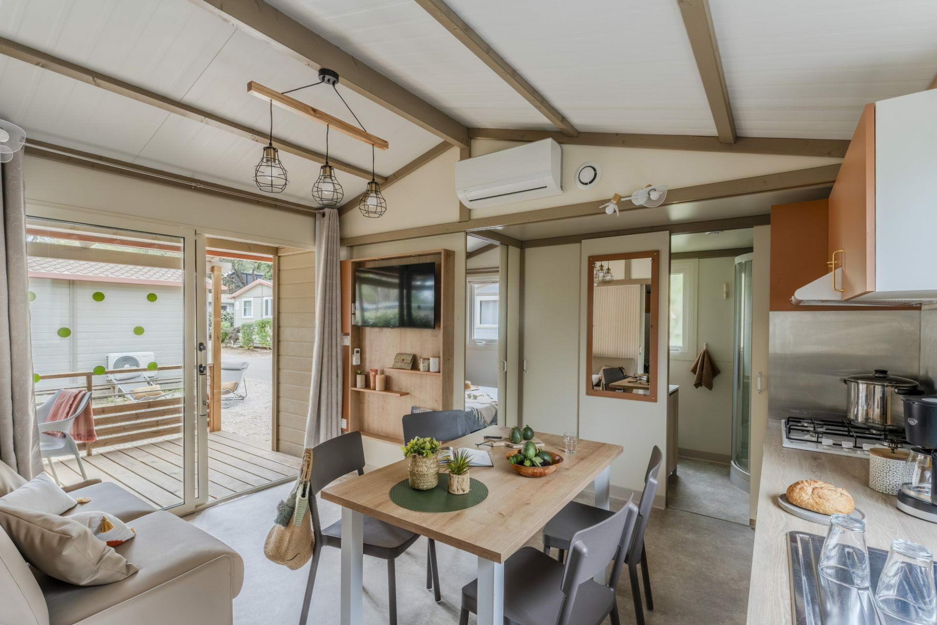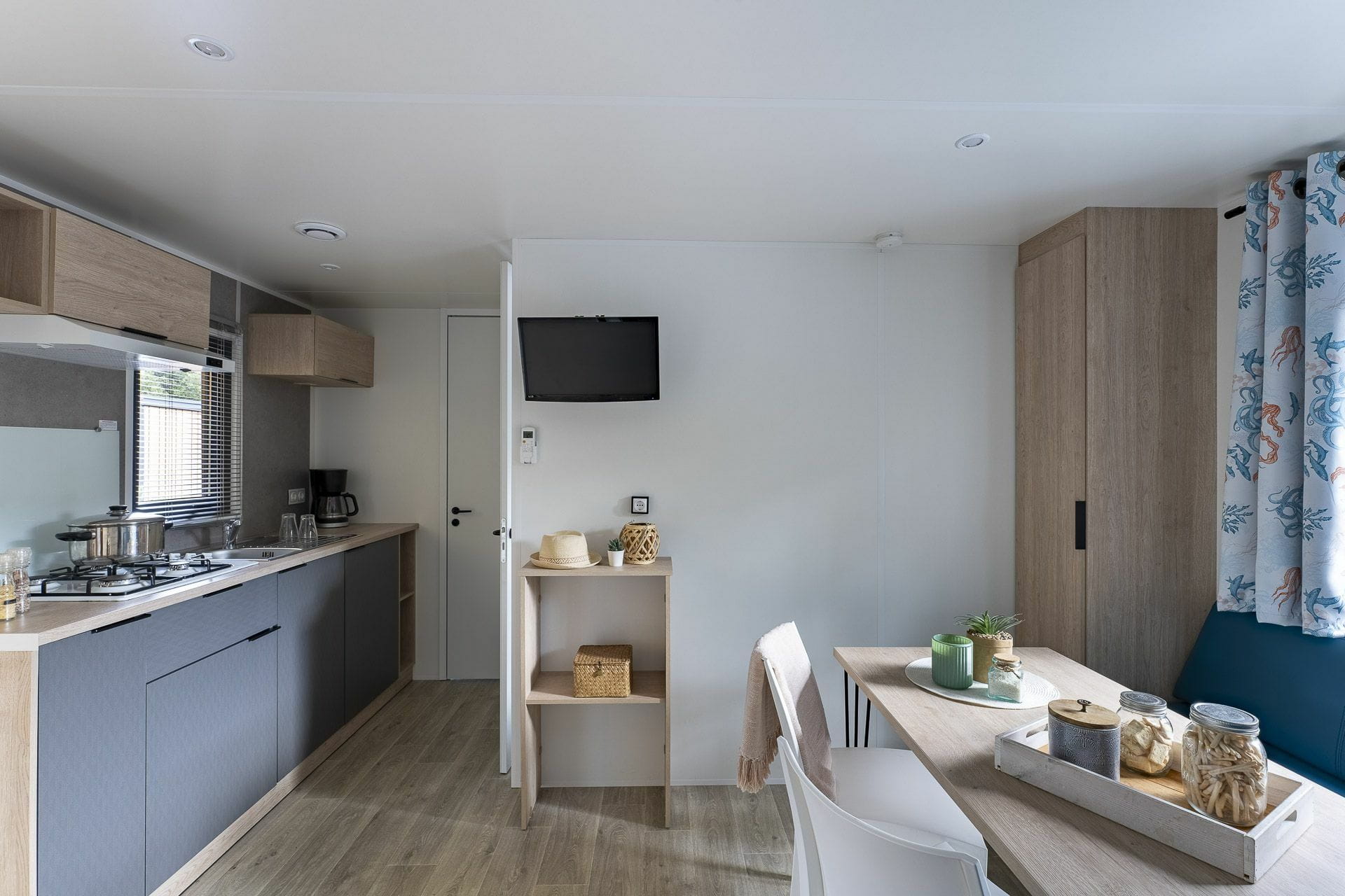 Selon les modèles, vous pourrez bénéficier d’équipements supplémentaires comme un lave-vaisselle, plusieurs chambres séparées, de nombreux rangements ou des aménagements adaptés aux personnes à mobilité réduite. Chaque logement a été pensé pour vous offrir un espace de vie agréable et convivial, parfait pour se ressourcer après une journée de baignade, d’activités ou de farniente au bord de la piscine.